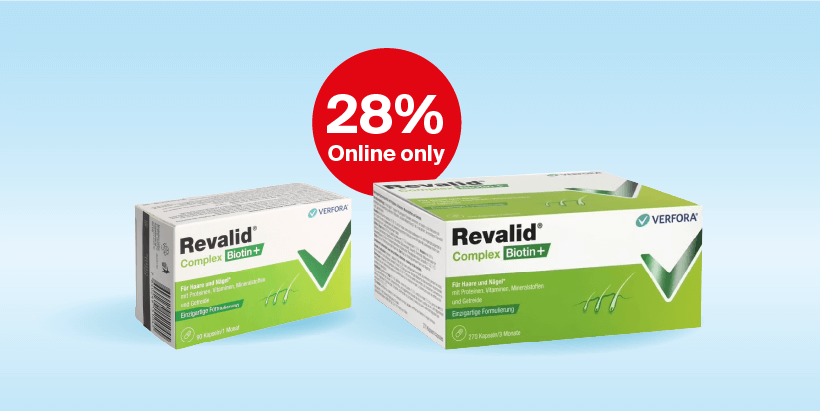 Kräftiges Haar beginnt bei der richtigen Pflege und gezielter Unterstützung. Revalid steht für hochwertige Formulierungen, die speziell auf die Bedürfnisse von Haar und Kopfhaut abgestimmt sind. Ob Kapseln, Shampoos oder aufbauende Pflegeprodukte, die Marke verbindet wissenschaftliche Expertise mit bewährten Inhaltsstoffen. Mit Sunclub Premium profitieren Sie von 28% auf ausgewählte Revalid Produkte. Auch ohne Premium erhalten Sie 20%. Eine ideale Gelegenheit, Ihre Haarpflege bewusst zu ergänzen.