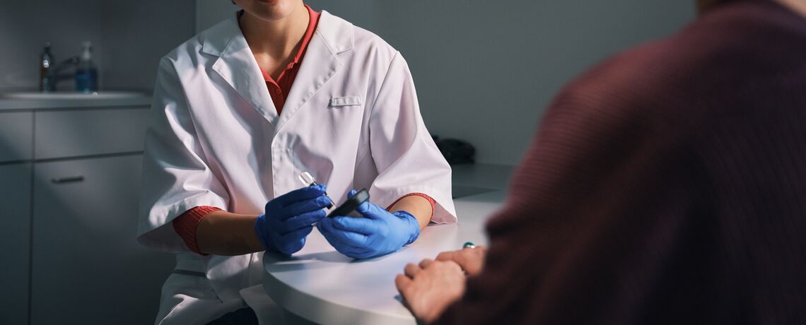 Un échantillon de sang est prélevé au bout du doigt afin de mesurer votre taux d’hémoglobine glyquée (HbA1c), un indicateur clé du contrôle glycémique à long terme. Ensuite, nous discutons ensemble des mesures de prévention adaptées à votre situation.