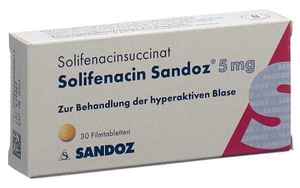 Solifénacine Sandoz contiene il principio attivo succinato di solifenacina, che riduce l'iperattività della vescica.